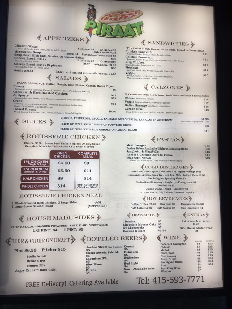 Welcome to Piraat Pizzeria & Rotisserie, a vibrant Italian eatery located in the heart of San Francisco. This casual spot is perfect for pizza enthusiasts and offers a delightful menu that spans beyond traditional offerings.